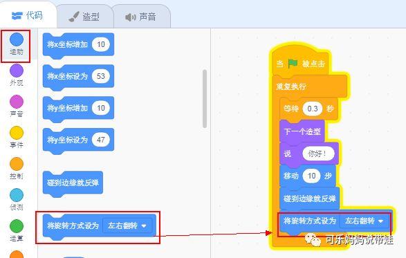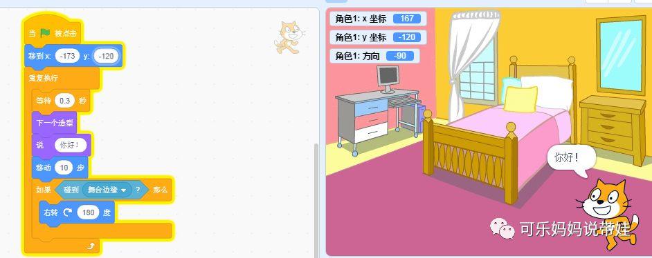 文章作者可乐爸爸,公众号:xiaokele_mama。上次的课程中,用下面5个代码块,让小猫一边运动一边说话。