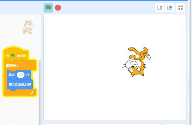 你会发现猫猫一直跑,而且跑到边缘抓回来后,还是会继续跑。学习Scratch之入门
