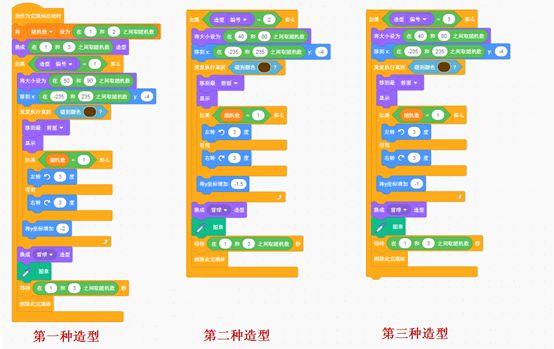 上面是三种雪花造型代码:设置大小,旋转落下,着地处理等。