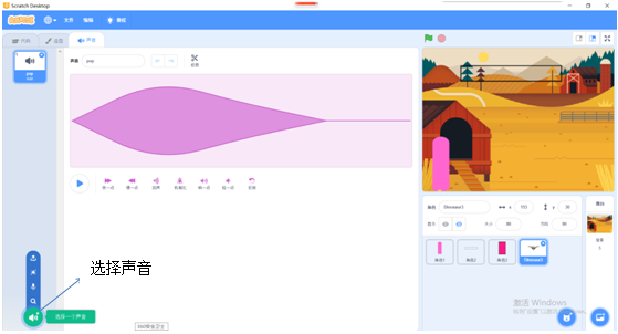 我们发现,要想游戏效果更好,我们还可以加一点撞击声音,这只需要我们添加重点代码:添加音乐脚本,如下操作所示: