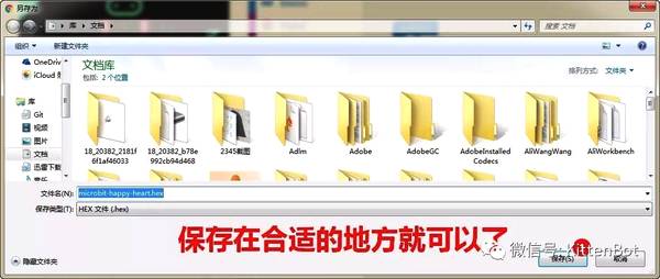 2、保存在Micro:bit识别出来的U盘上(名称可以不用改,默认保存即可)