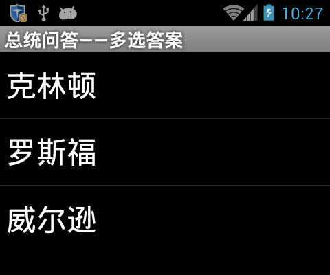 图19-23 向用户展示第一题的多选答案当用户选中一个答案之后,判断用户的选择是否正确,如图19-24所示。
