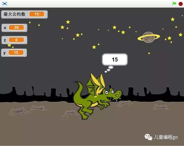 点击小绿旗运行程序,求得255和75的最大公约数是15。