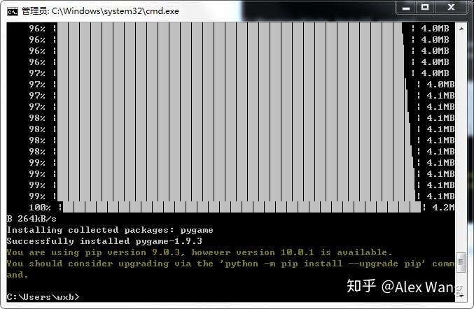 看到输出Successfully installed pygame-1.9.3表示安装成功了,可以后续课程了。