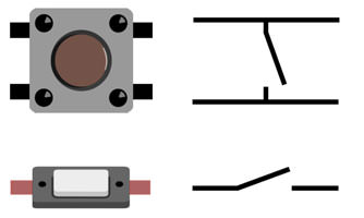 当按下按键时,按键两端接通,当放开时,两端再次断开。