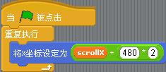 4、学习范例,能理解和运用以下脚本,控制“山”的角色移动,类似卷轴的效果。