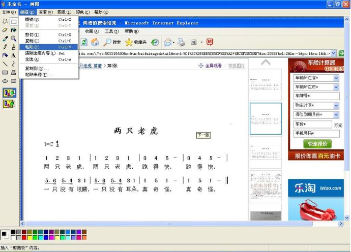 4、网上下载音乐的简谱或五线谱,了解并掌握1-2种下载图片的方法。