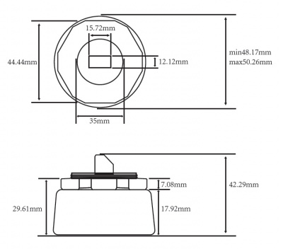 • 模块尺寸 :喇叭口最大尺寸50mm,安装螺纹50mm,长40mm