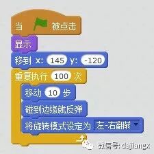 先把老鼠移动到一个指定的坐标位置,然后让老鼠左右移动。让移动指令重复执行100次。