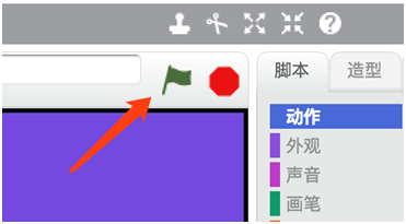 画面中间的旗子标志,这就是Scratch中的“运行”按钮。