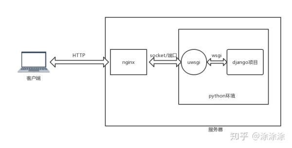 我们采用 nginx + uwsgi 的方案进行部署。整个系统架构图如下: