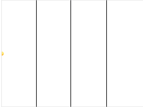 我们在舞台上绘制四条线,将整个舞台在水平方向分成了四个区域,每个区域宽度为120,小球从左开始运动,水平的速度不变,但在不同的区域中,垂直方向上会有不同的速度。