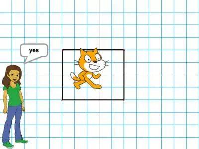 题目:有一个正方形,四个角的坐标分别是(90,-90),(90,90),(-90,-90),(-90,90)。编写程序,开始运行的时候给角色设置一个随机位置,然后判断这个角色(角色的中心点)是否在这个正方形内(包括正方形边界),如果在正方形内说“Yes”,否则说“No”。