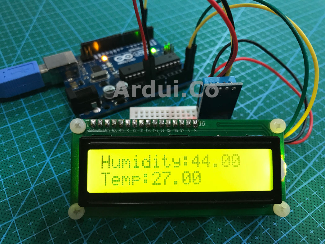 现在结合第9课的 DHT11 传感器,将湿度、温度显示在 1602 上: