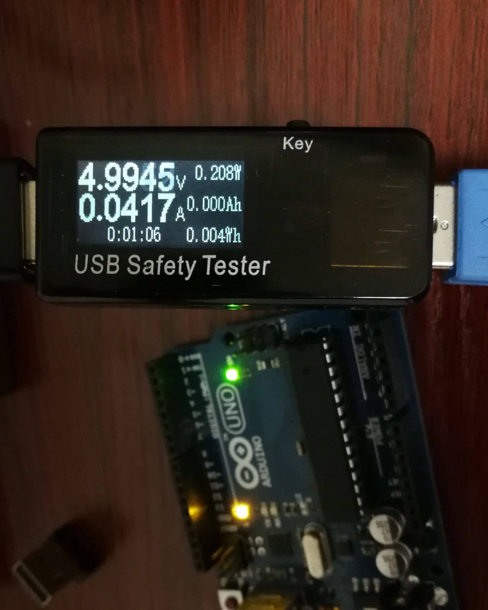 原速运行时,Arduino UNO的功耗为 P = 0.05A * 5V = 0.25W