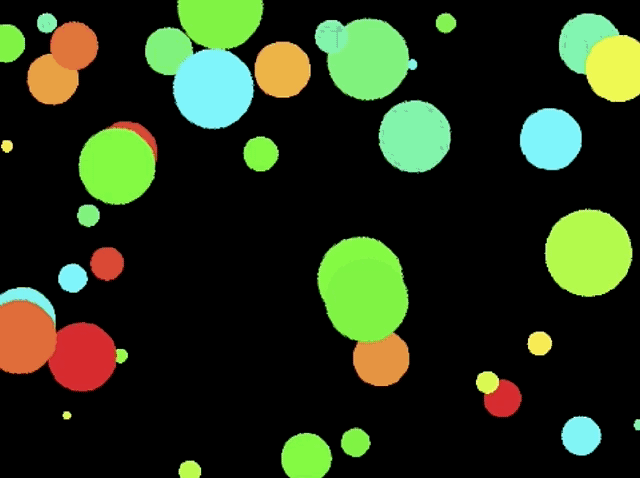 现在,小球变成了在舞台上来回碰撞的彩色的球。