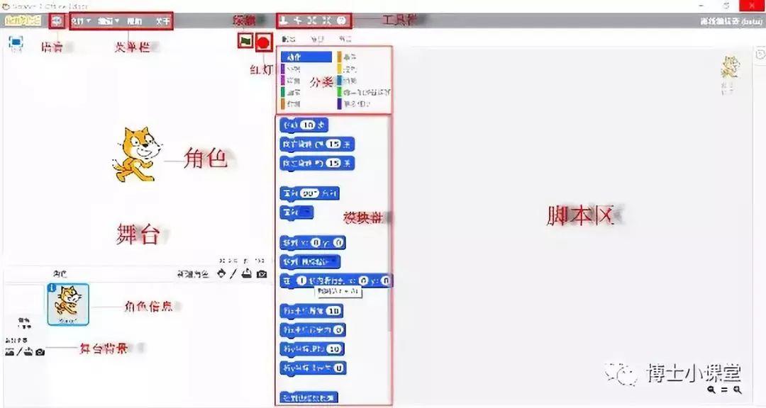 上期的内容的知识点如上所述。本期我们来介绍scratch的界面及其相关的功能模块,这里以scratch2.0的离线版本来介绍。