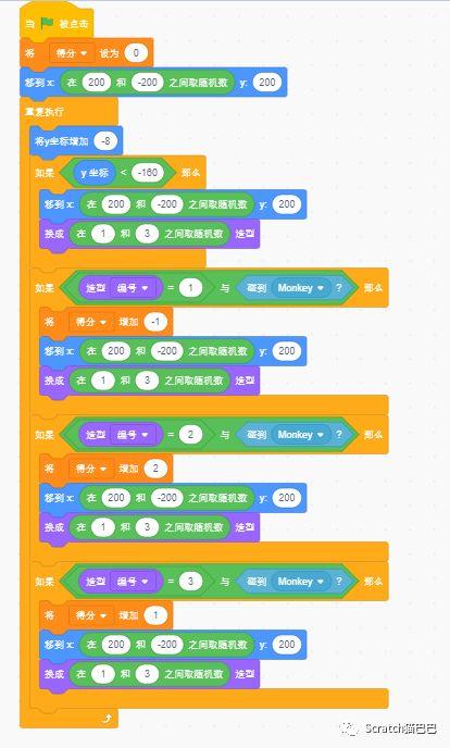 这是猴子的脚本,可以通过判断和侦测来实现。当游戏停止时,键盘也会失效。如果用“按下什么键”做什么事情,键盘触发的方式来做,绿旗停止了,猴子还能移动的。