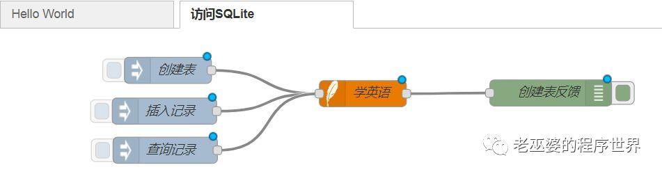 我们创建一个新的程序页,将数据库操作相关的流程序复制到新页中,新页取名为“访问SQLite”,如图28所示。