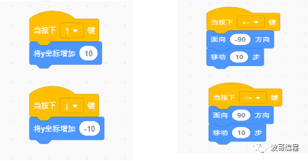 主角的移动,由键盘的上、下、左、右四个方向键来控制,实现控制的代码如图所示: