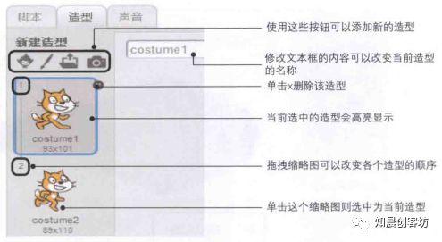 使用复制和删除按钮可以复制和移动角色、造型、声音、积木块或脚本。放大按钮可以放大角色,缩小按钮则相反。只需要先单击一下放大/缩小按钮,然后对准舞台上的角色单击即可放大、缩小。