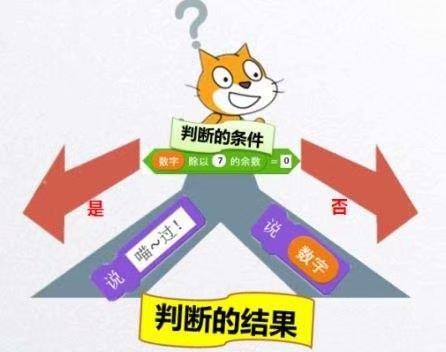 我们前面已经把题出好,现在就要来判断做题的小朋友给出的答案是不是正确的。如果回答正确,我们让老师说出“答对了!”的文字气泡;如果答错了,让老师说出“答错了!”的文字气泡。通过描述,小朋友们可能也发现了,这里我们需要做的就是一个“判断”,所以我们去【控制】类别中找到【如果…那么 …,否则】这一积木块。