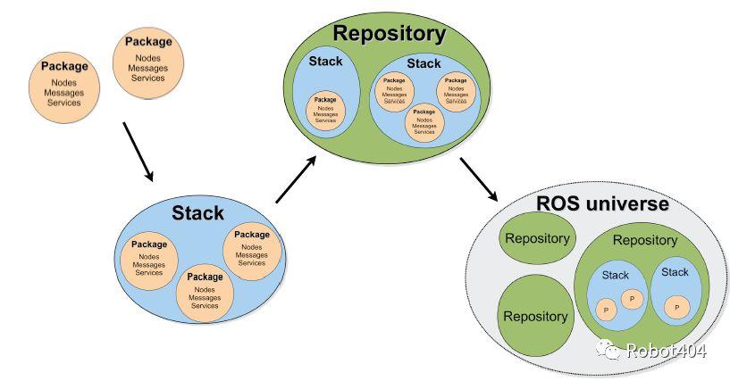 一套用户贡献的软件包(组织成称为堆栈的集合),实现常见的机器人功能,如SLAM,路径规划,感知,仿真等。